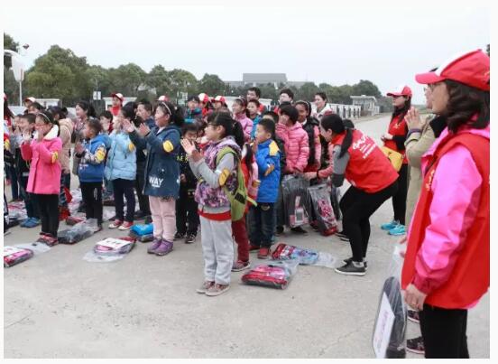 植樹(shù)結(jié)束后,長(zhǎng)順的伙伴們給這些孩子一一贈(zèng)送了書包與學(xué)習(xí)用品,孩子們邊唱邊跳,對(duì)長(zhǎng)順的叔叔阿姨們連聲道感謝,場(chǎng)景溫暖而又感人。